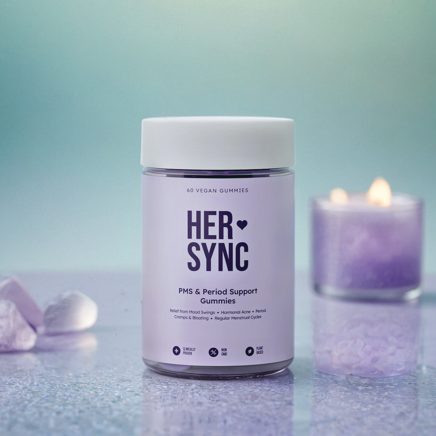 At HerSync, we believe feeling good shouldn’t be limited to some days of the month. Our PMS relief gummies are designed to ease bloating, mood swings, cramps, and hormonal acne so you can move through your cycle with confidence and control.
