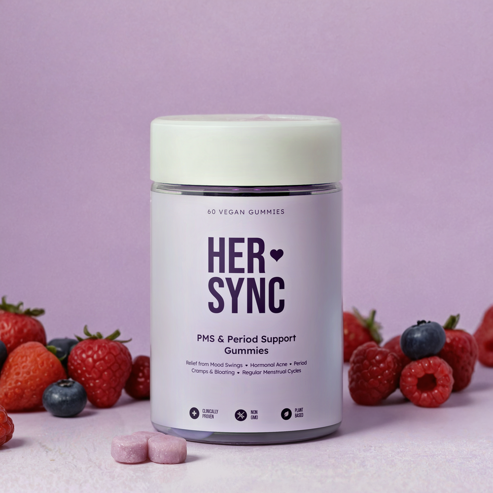 At HerSync, we believe feeling good shouldn’t be limited to some days of the month. Our PMS relief gummies are designed to ease bloating, mood swings, cramps, and hormonal acne so you can move through your cycle with confidence and control.